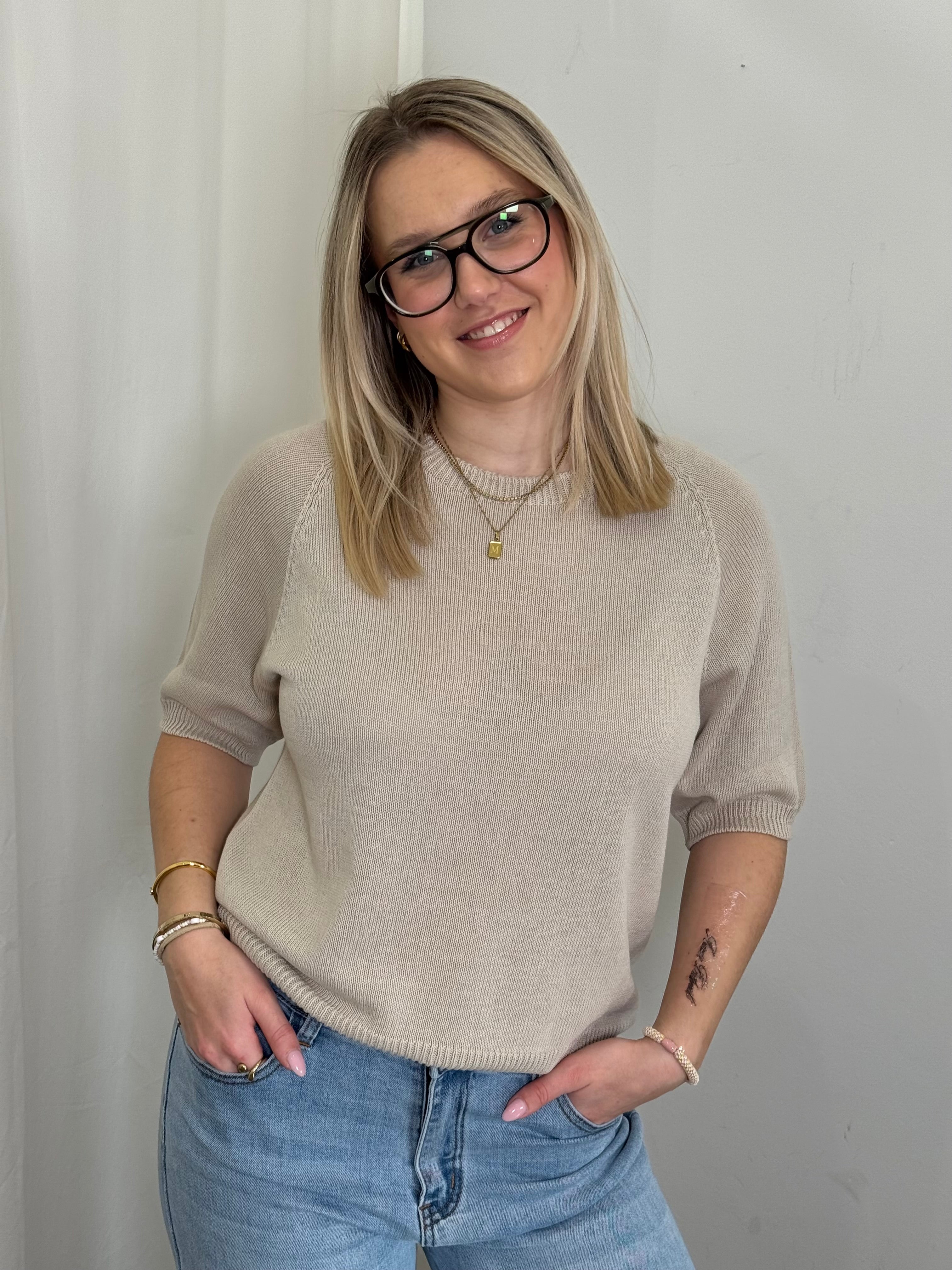 Baumwollpullover Anni kurzarm taupe