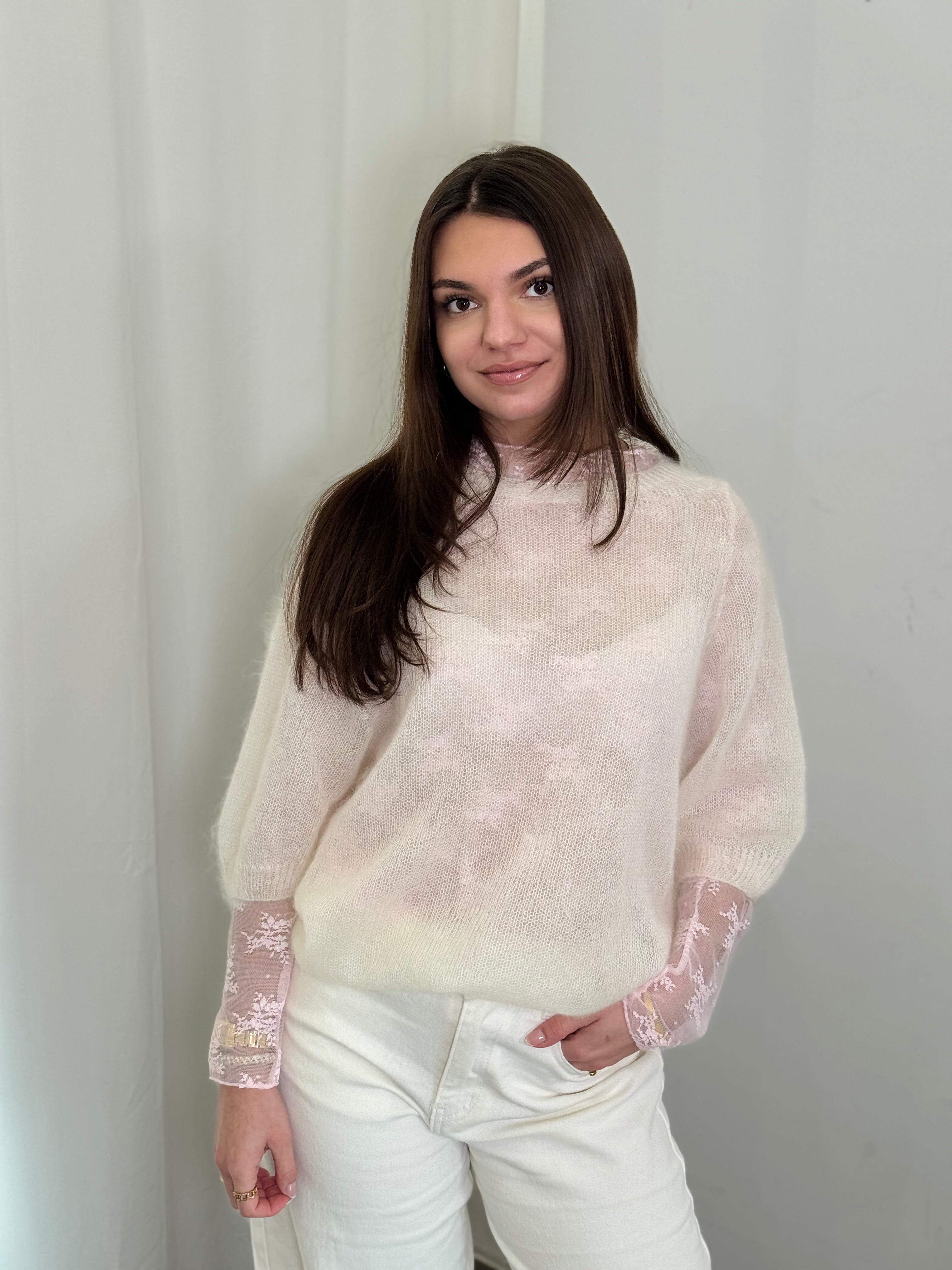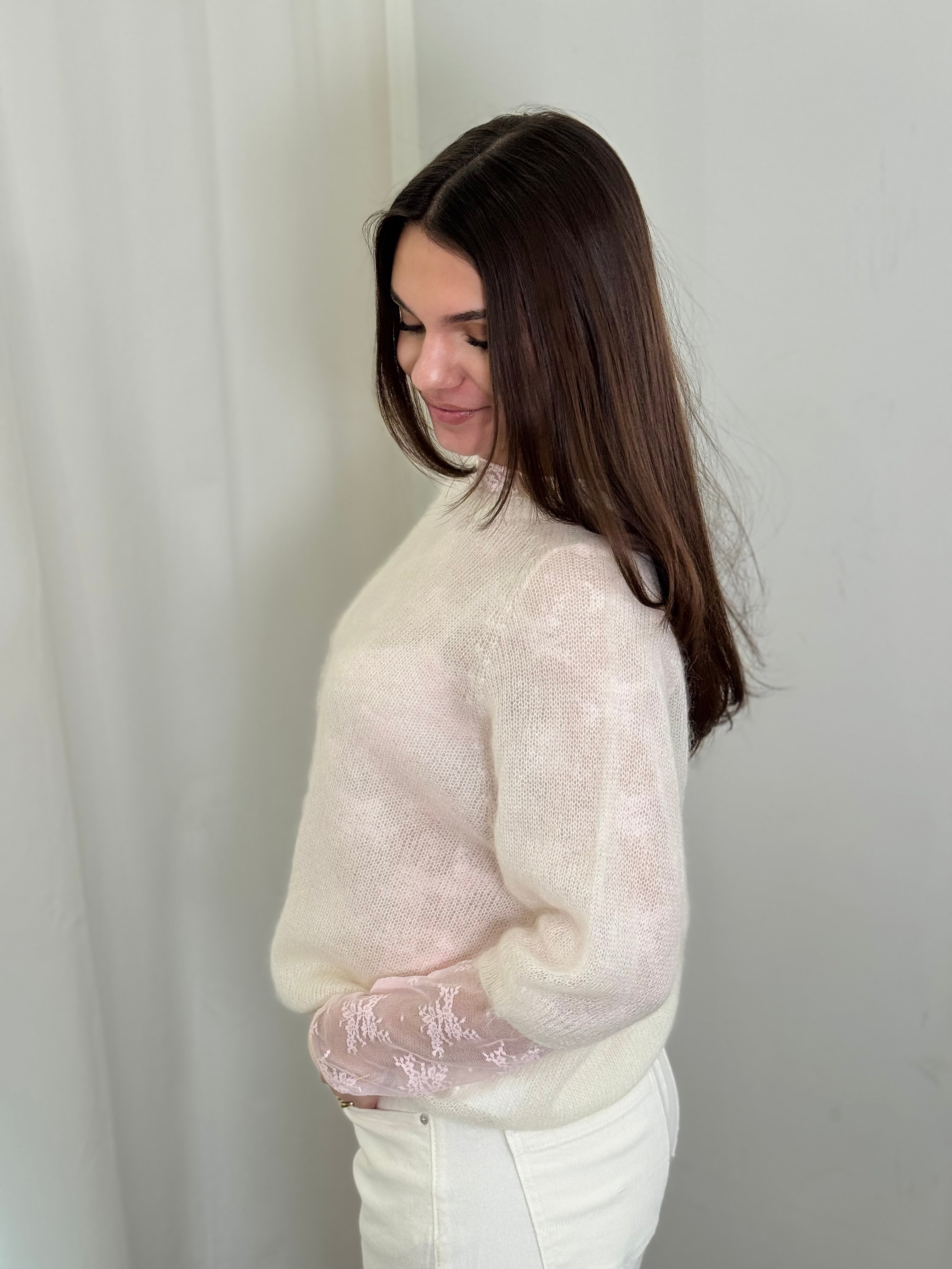 Light Mohair 70 % Pullover Kurzarm creme