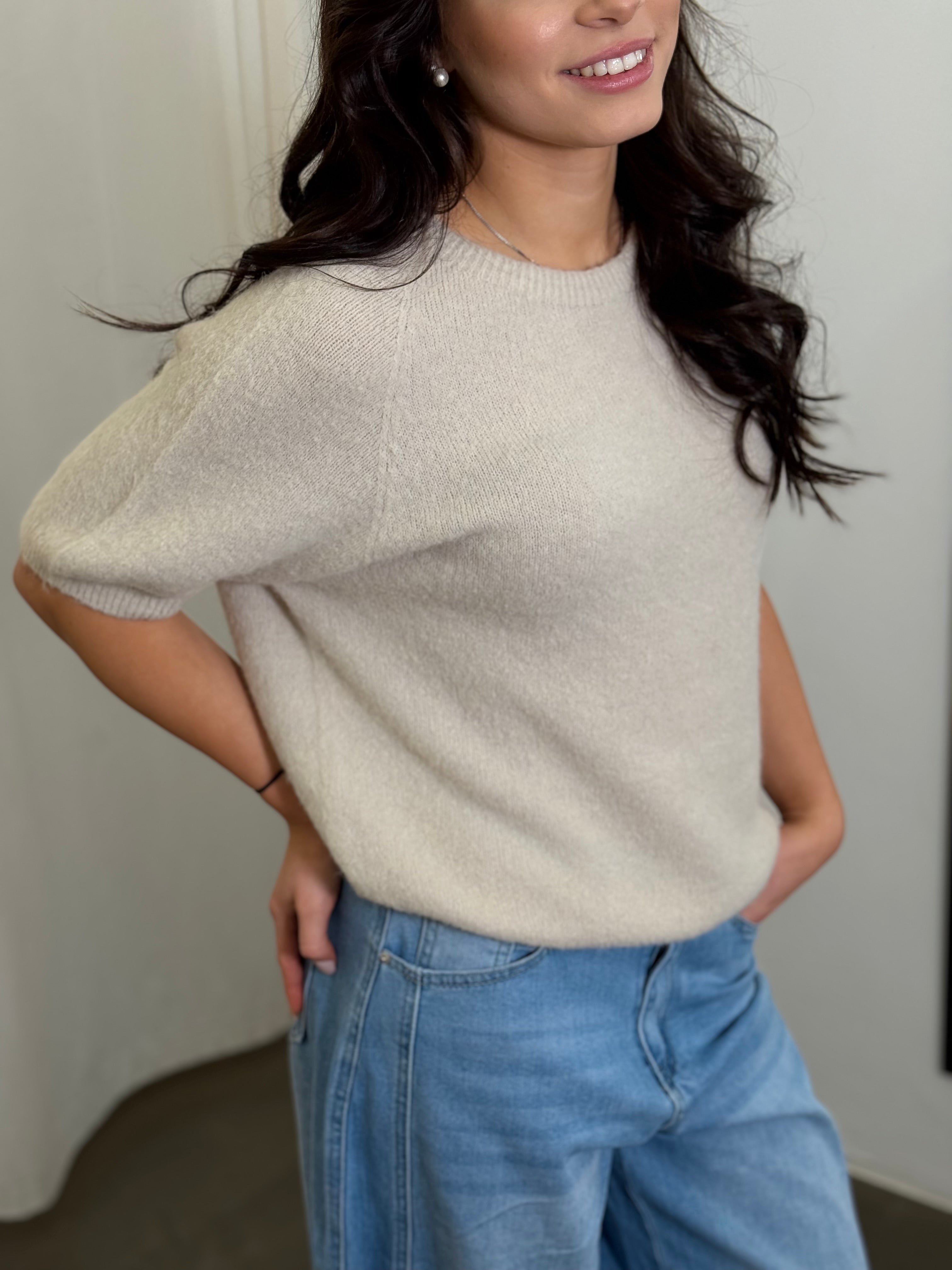 Alpaka Kurzarmpullover Anni beige